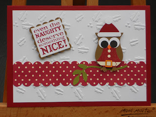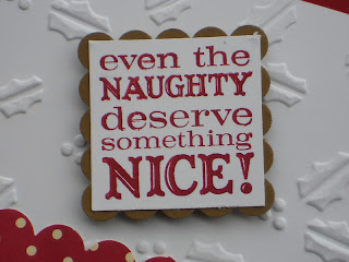 This is the 2nd card I turned out from the visit to my friend’s place. It is based on a tag that I saw on SCS here. I expanded and added a little to make it into a cute and a little bit of a cheeky Christmas card.