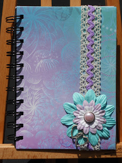 Here are another 2 altered notebooks, this time for siblings Miss 14 and Miss 11. The paper for Miss 14’s notebook was the one NOT in the 60 cent pile, but I think it turned out to be my favourite. She is a real purple lover but the blue woven into this DP had me sold from the get go.