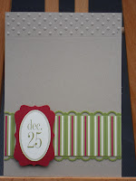I think I am a SUCKER for Christmas stamp sets, due to the fact that when I packed up my stamps to go to her place, I actually had to leave SOME behind. One set I did take was “Tags Til Christmas”. I got the inspiration for my card from this one on SCS.