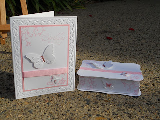 A little while back, I made a CAS card which got me to thinking here. I had 2 birthdays of girls of a similar age (one turning 13, and one turning 14) and I was wondering if I could make the card into a pretty box for their desks. This is the version of the card I made to go with the box for Miss 13….
