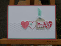 Dies, Punches, Framelits and Embossing Folders: (SU) Petite Curly Label Punch, Jewellery Tag Punch, Banners Framelits, Hearts a Flutter Framelits, Adorning Accents EF, Chevron EF, Carla Craft CP2 heart, Carla Craft CP8 Hearts
