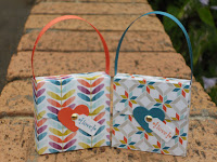 I used the Sycamore Street DSP (avail for SAB) with the matching ribbon for the handles. The closures are a wee heart (der for Valentine’s day) and a tag from the Tiny Tags stamp set. Here they are from the back and close up on the closure…..