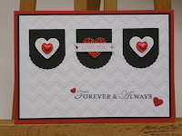 The second option was based on Rebecca’s card. I loved the idea that she had of the banners and hearts and then the simple sentiment. I did however change the colour palate to a bolder black, red and white.