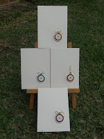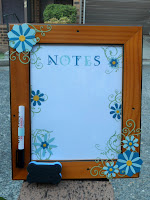 My son’s teacher received a gift that I have seen around the blog traps a bit in the form of an altered picture frame that is made into a whiteboard. This one was an 8 x 10 inch frame. My son told me she loved blue hues, so that was my starting point…….
