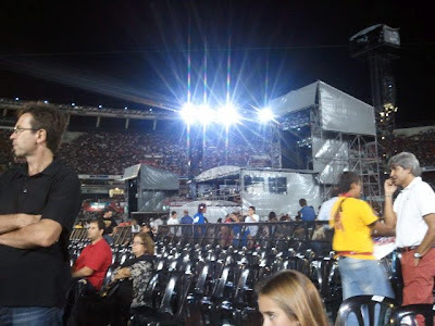 Habiendo formado otra colita, me doy cuenta de qué está hecho realmente EL MURO. El acceso, se encontraba exactamente abajo del escenario. Y luego de una caminatita y de dejar que el acomodador fiscalizara mi entrada, me poseyeron los espíritus de Marcelo Salas, Pablo Aymar, Javier Saviola, el Burrito Ortega y hasta el del Enzo Francescoli, al tocar con los pies el gramado del Estadio de la Banda roja, frente a un público sediento de pan y circo desde tres de los cuatro costados. No sé por qué no pude evitar tararear el cantito: “Rosher Güoooooters, hoy te viniiiiimo a veeeeeer. Ponga hueeeeevooooo, vos no podés perrrrdeeeeeerrrrr”. Y nada, eso.