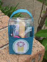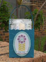 I used the Sycamore Street DSP (avail for SAB) with the matching ribbon for the handles. The closures are a wee heart (der for Valentine’s day) and a tag from the Tiny Tags stamp set. Here they are from the back and close up on the closure…..