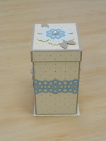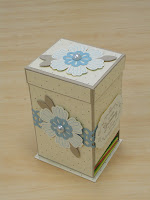 One of the secretaries at work was having a birthday. She and I have a ball when chatting, are as equally as mad as each other and never stop laughing. She is also a lover of all things vintage. With this in mind….I set about to create her something unique and slightly vintage for her birthday. I made her a tea caddy with a matching card. The tea caddy tutorial I used was from LeeAnn Greff here. It was very easy to follow, however the lid to the caddy on LeeAnn’s pdf was too big for the box dimensions she cited. From memory, I think I knocked 1/8″ off each side, but I cannot be sure.