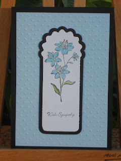 The first I could not go past this simple and elegant card by Mercedes Weber here. It was for the wife of one of my “regulars” whose husband passed away. He was a real wordsmith and loved the English language. Here is my version of Mercedes’ card…..