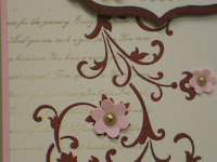 I loved all the small details in this card. The pale pink flower under the sentiment, the script writing under the flourish and the way the wee pink flowers were shaped.