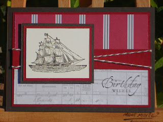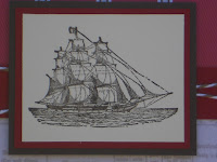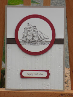 As you can see I kept most of the elements all but the compass. Once I worked out the dimensions, it all went together very quickly. You have to love the intricate image of the ship and the easy sentiment stamped straight onto the DSP.
