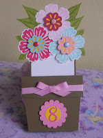 Today I wish to share with you the card I made for my DD’s 8th birthday. She (still) loves pink and recently has shown an interest in making cards. For this very reason, I wanted to make her something a little different. I love the wee flower pot cards and stumbled across a tutorial here from Sandra Azzopardi. This is the card I made for my DD……..