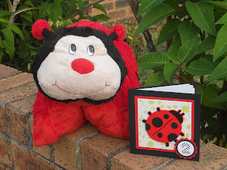 Her gift actually inspired my card. Anyone with a child under 7yo will be familiar with “Pillow Pets”. They are insanely cute and have different characters. I chose a ladybug for Jess. Once again though…I ran out of time to make something appropriate to match. Fete however kindly intervened!! Before I started stamping, I made cards from all sorts of things. I stumbled across the lightweight wooden cutouts and mounted them up very basically. I simply added the number to the card I already had made and woo hoo!!!