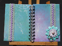 Here are another 2 altered notebooks, this time for siblings Miss 14 and Miss 11. The paper for Miss 14’s notebook was the one NOT in the 60 cent pile, but I think it turned out to be my favourite. She is a real purple lover but the blue woven into this DP had me sold from the get go.