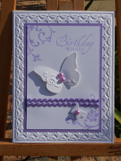 This went together so very easily. I added a couple of my own tweaks from the original with the sentiment and the textured butterfly.