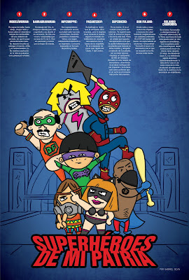 3. HIPERHIPPIE: Sus superpoderes son sobrevivir en una sociedad cada vez más consumista, haciendo pulseritas y malabares. Vence a la mugre adhiriéndola totalmente a su organismo. Consume kryptonita en formato de pucho y tortita.