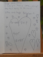 Not to be outdone, Miss 8 also wanted to make her own special card for the birthday girl. As she was turning 9, it was based around 9 items on the card. Miss 8 designed it all…. and I was so very touched by the words she wrote inside…..