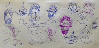 05Ja!: En el camino veo que desde una parada de taxi, el tránsito está parado porque se quedaron viendo la porno que el diariero grabó de la noche anterior. Corro una cuadra más y me acuerdo de que soy ciego (¿). Y anciano. (?). Me sale un callo en el hombro del medio. La goma de mi calzoncillo se me sube hasta la cabeza por inercia. Salto desnudo por mi barrio. Bailo la chiricuta en una estación de servicio. Toco el timbre y salgo disparado. Juego carnaval con globito de agua y ni aún así la senhora que me dijo: “Se nota que sos principiante, no te pusiste Calorub”, llega a la primera cuadra para que le asalten los peajeros.